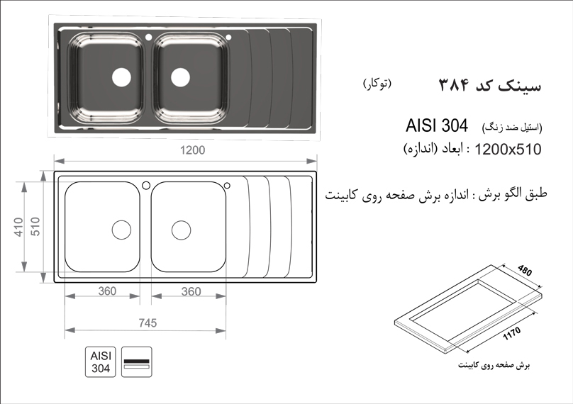 سینک ظرفشویی توکار اخوان مدل 384