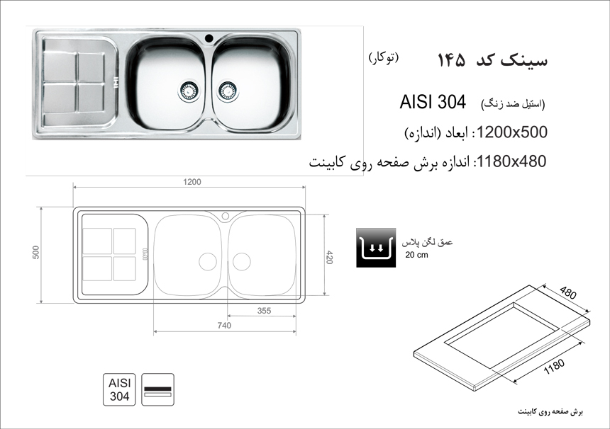 سینک ظرفشویی توکار اخوان 145