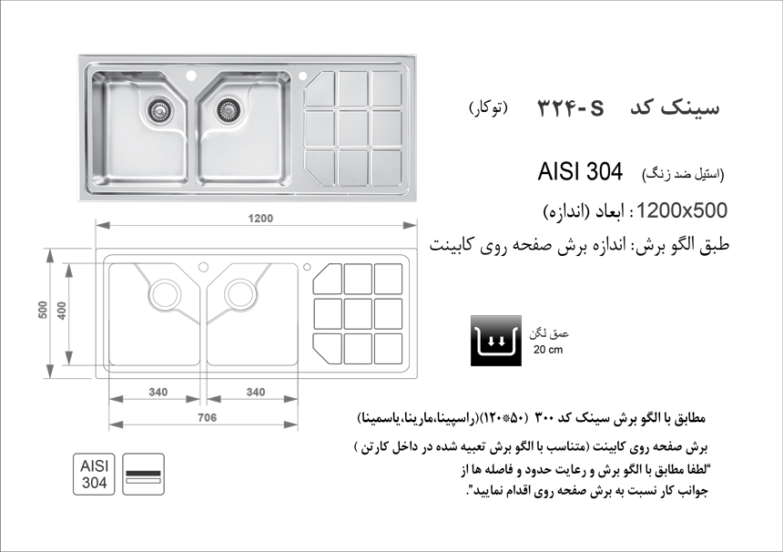 سینک ظرفشویی توکار اخوان مدل 324S