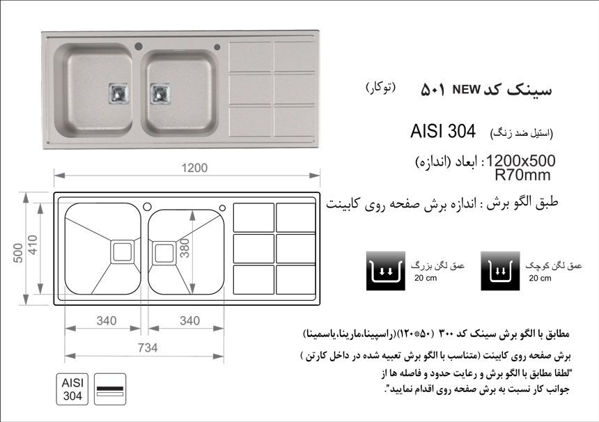 سینک ظرفشویی توکار اخوان مدل 501