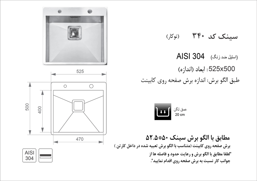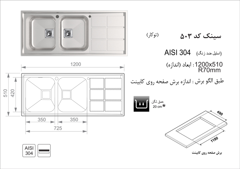 سینک ظرفشویی روکار اخوان مدل 163SP