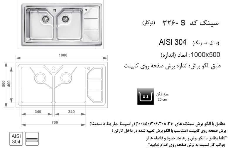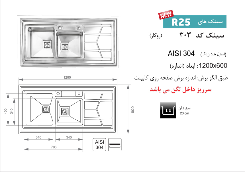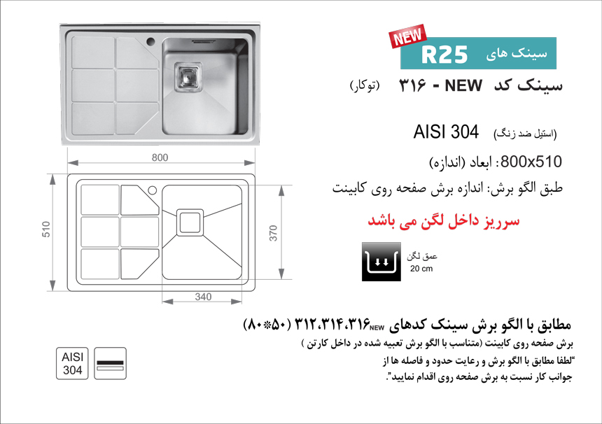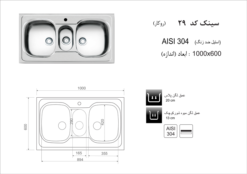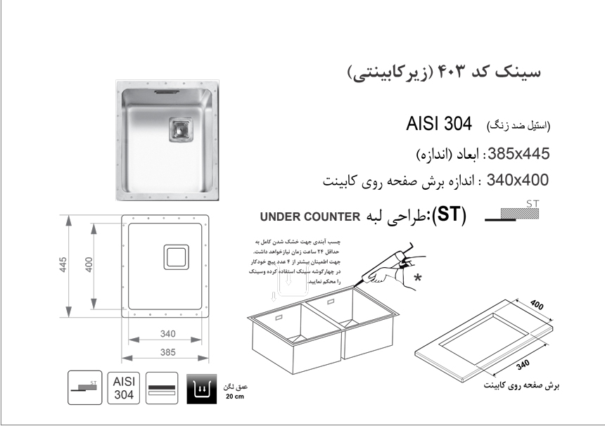 سینک ظرفشویی زیرکار اخوان مدل 403