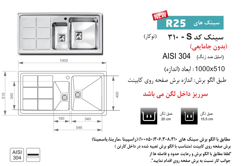 سینک ظرفشویی زیرکار اخوان مدل 410