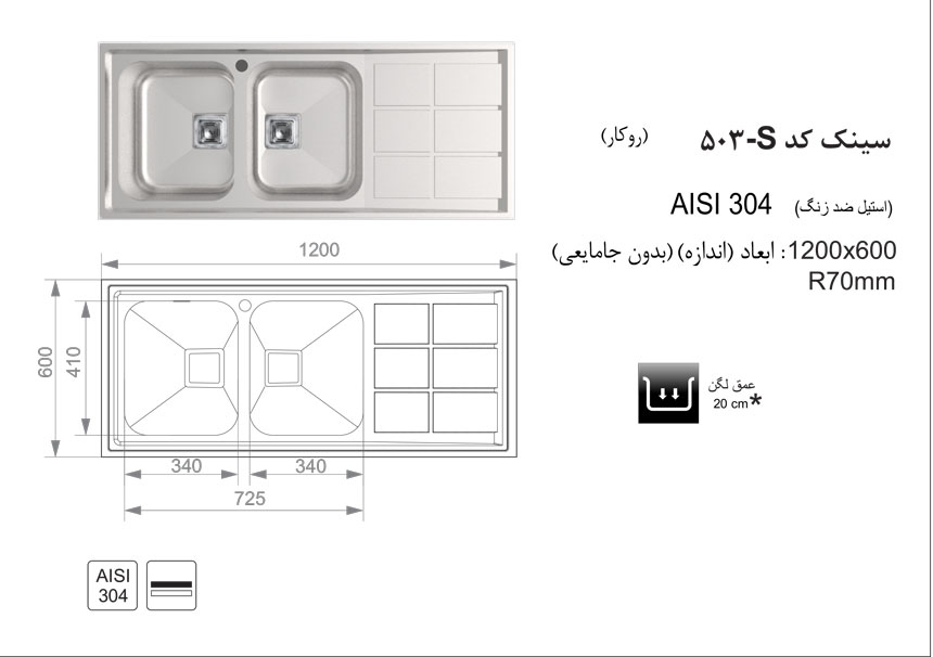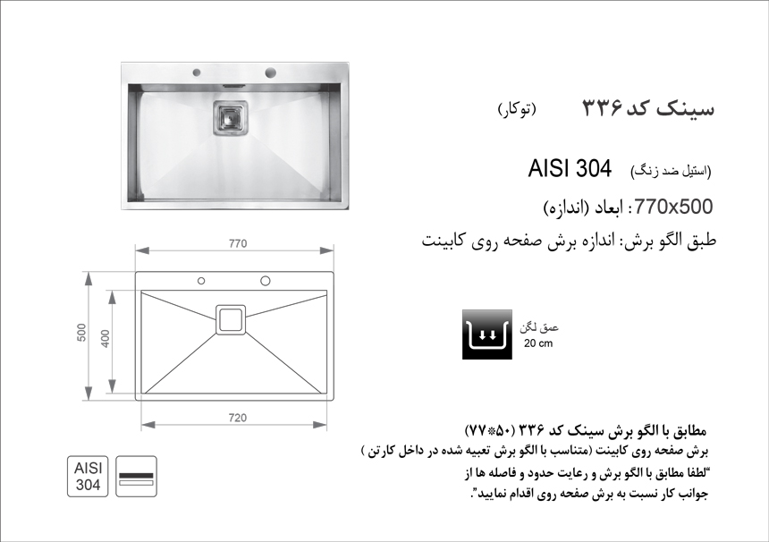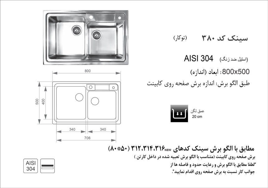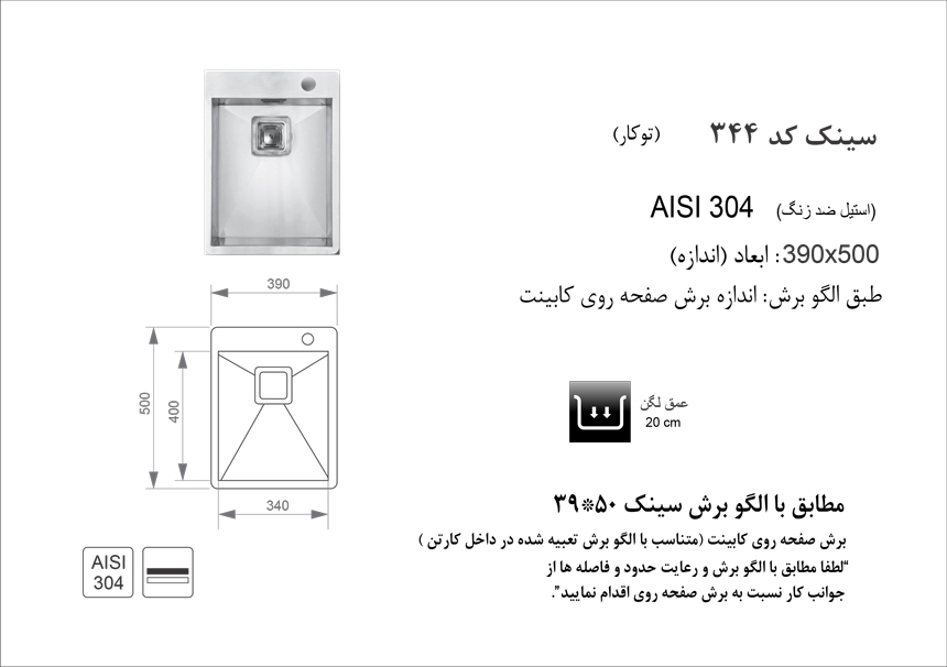 سینک ظرفشویی روکار اخوان مدل 148NEW