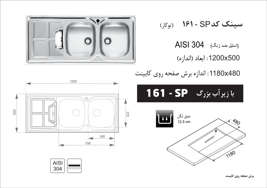 سینک ظرفشویی توکار اخوان مدل 161SP