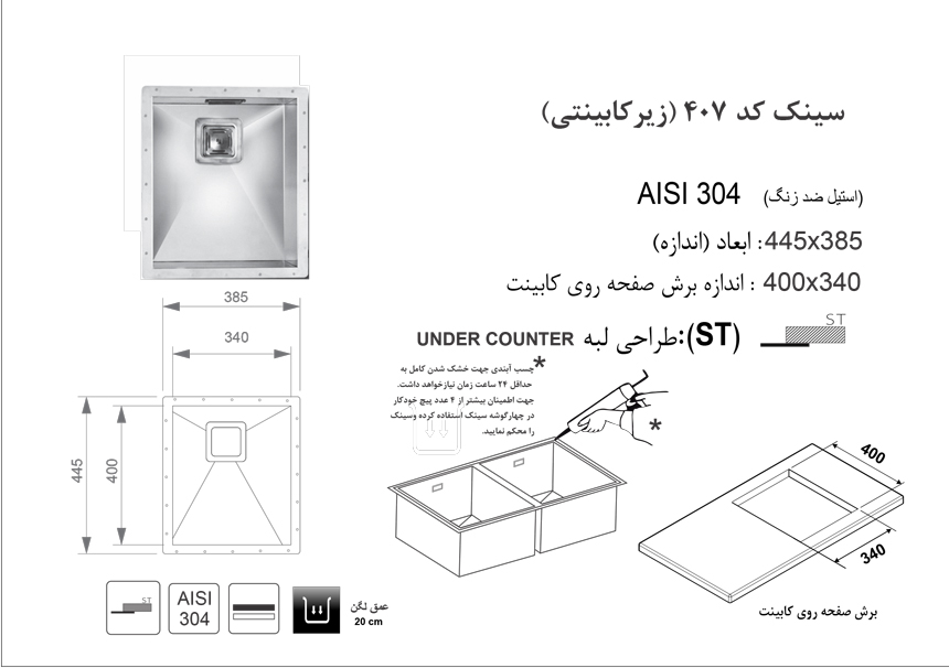 سینک ظرفشویی زیرکار اخوان مدل 407