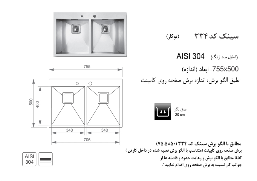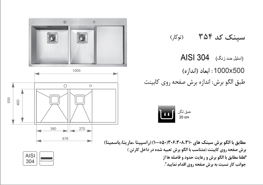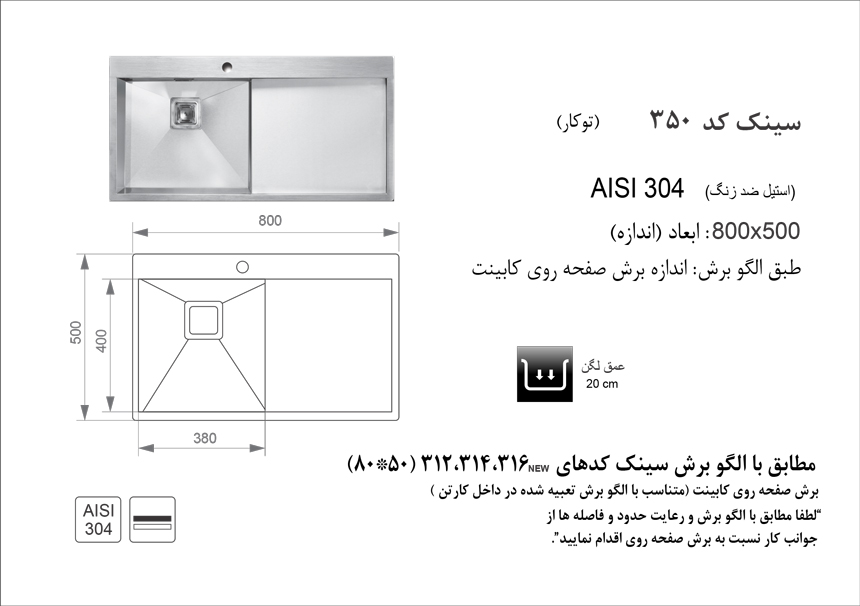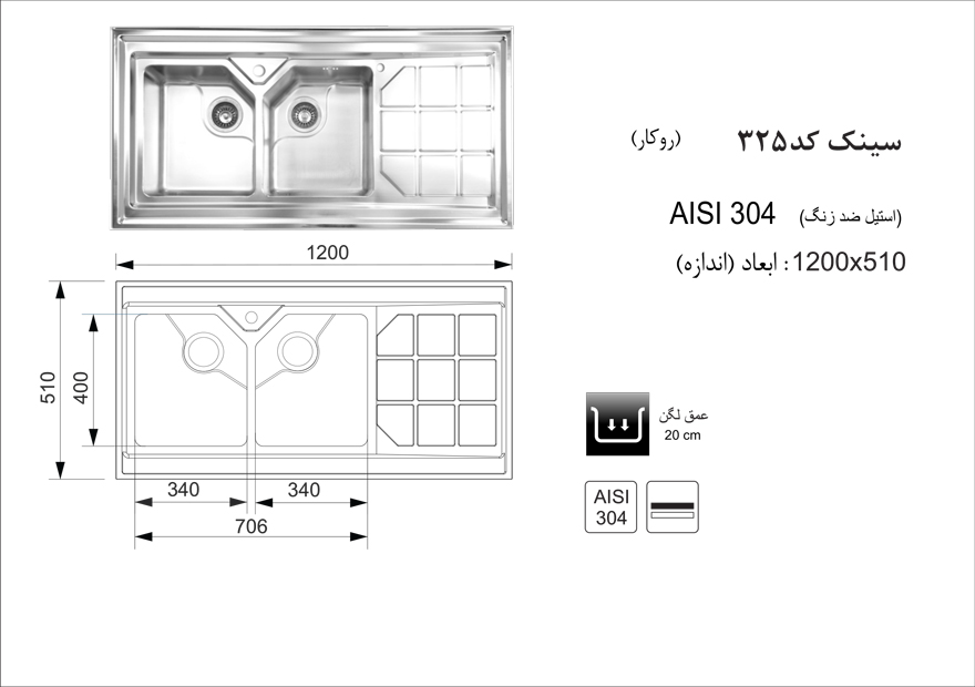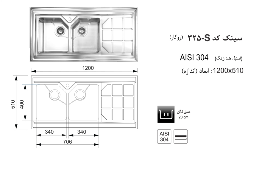 سینک ظرفشویی روکار اخوان مدل 163SP