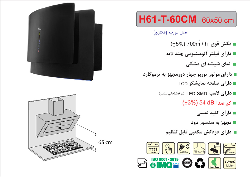 هود آشپزخانه مورب اخوان مدل H61-T-60CM