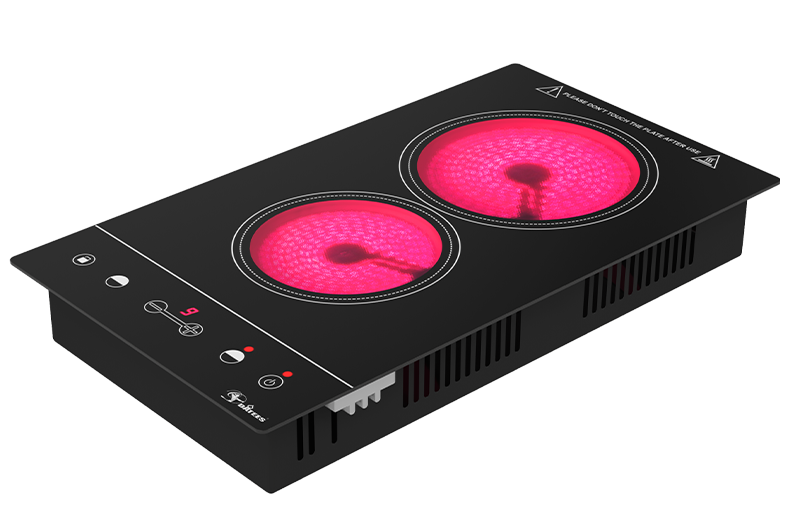 تعداد المنت ۲ عدد کنترل تمام لمسی تنظیم توان ۹ مرحله ای دارای نمایشگر توان المنت دارای ترموستات تنظیم دما دارای قفل کودک شیشه سرامیکی مقاوم به حرارت ابعاد ۸۵*۲۹۰*۵۱۰ میلیمتر توان کل ۳۰۰۰ وات توان المنت بزرگ ۲۰۰۰ وات توان المنت کوچک ۱۰۰۰ وات