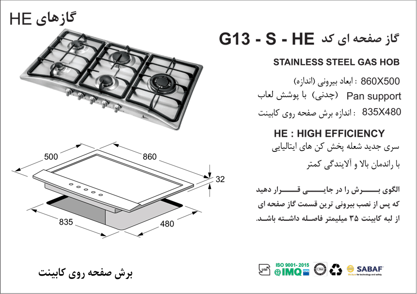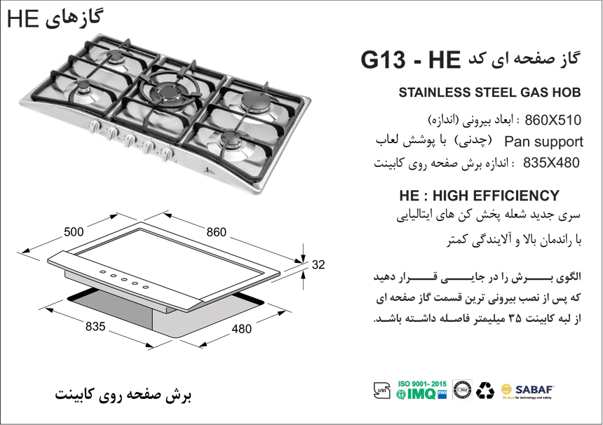 گاز صفحه ای اخوان کد G13-HE